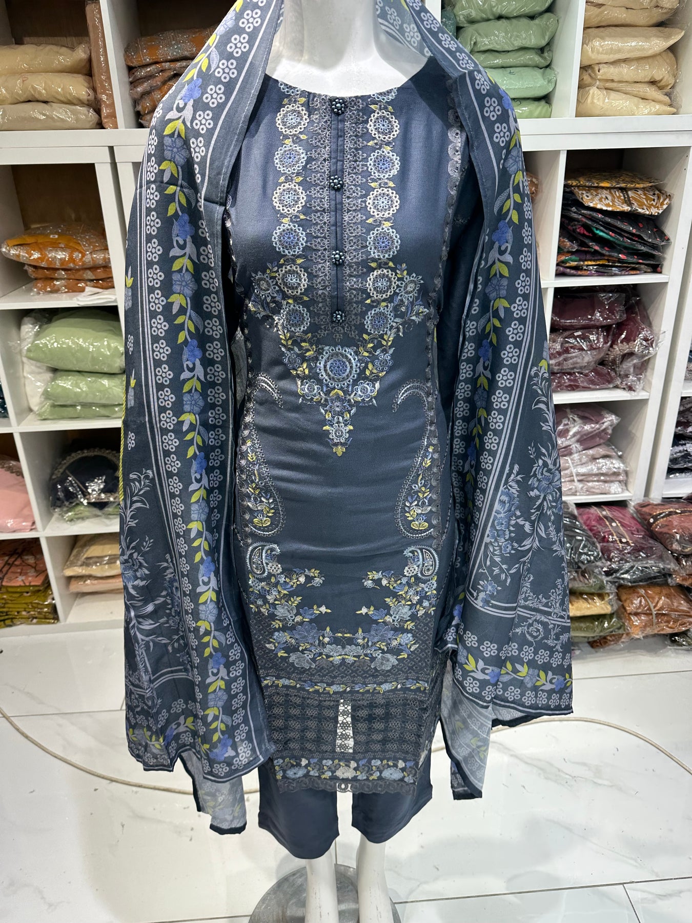 Three piece dhanak material suits on offer perfect for home wear and occasional wear