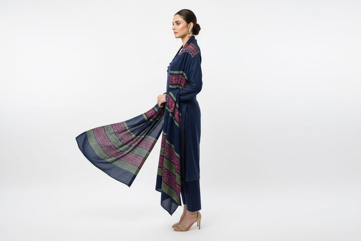 Three piece dhanak material suits with shawl perfect for occasional wear and for winter