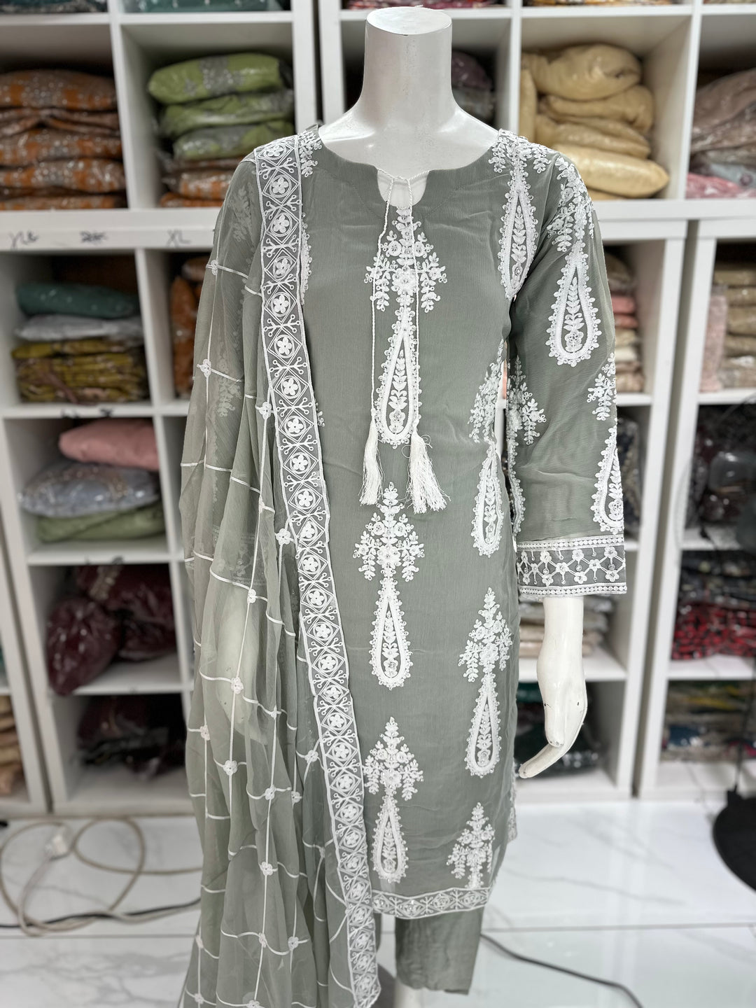Three piece chiffon suits ready to wear